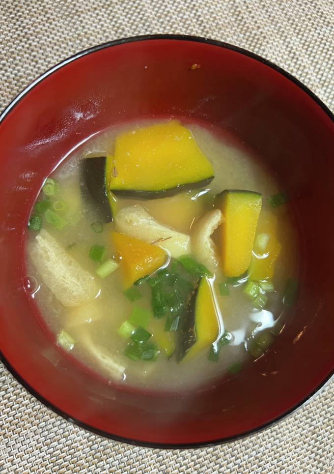 カボチャは、5ミリくらいの厚さに切る。薄揚げは、細切りに。