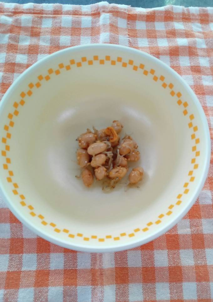 大豆、ちりめんじゃこ、ごまを混ぜたところへ、タレを少しずつ入れてよく混ぜる。