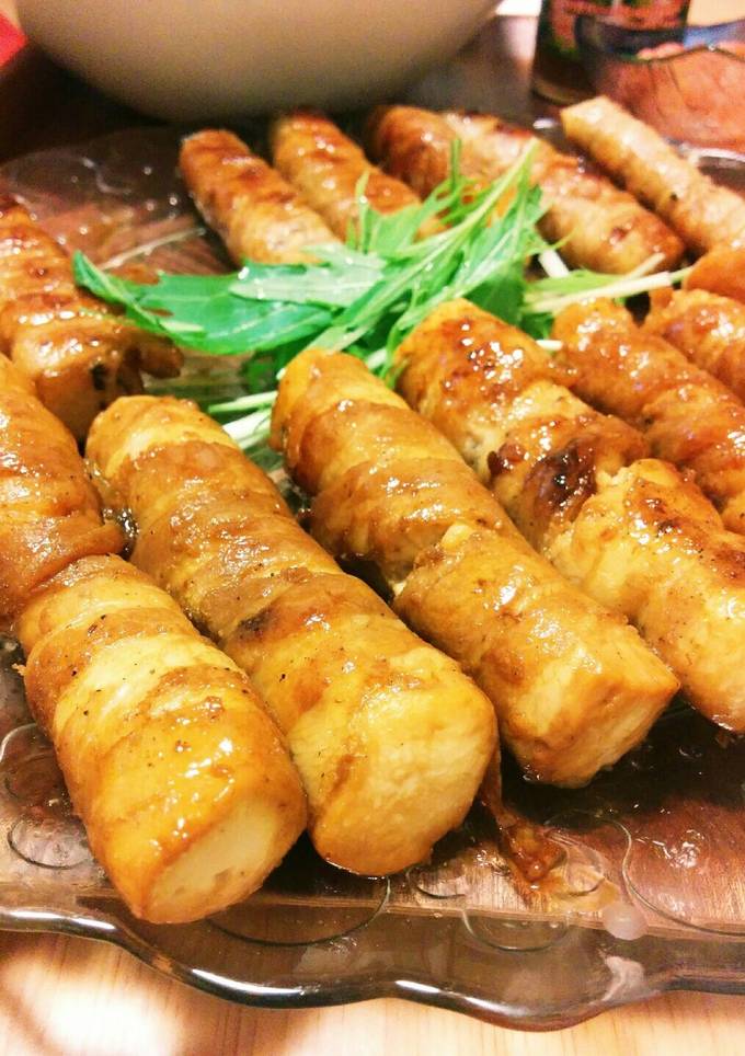 肉に包まれた木綿豆腐がふわふわで旨い!少しの肉でも満足のヘルシー肉巻きです